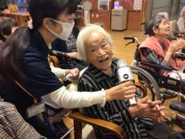 軽快な話術も加わり、入居者様も笑顔いっぱいの時間となりました。
