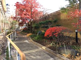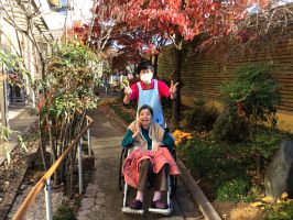 紅葉を眺めながら、秋晴れの空の下、のんびりお庭散歩を楽しみました。