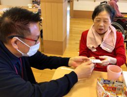 皆様の無病息災を願って、おやつにぜんざいを召し上がっていただきました。